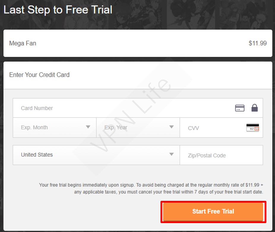 After you have entered this information, click the “Start Free Trial” button. Once you do this, you are done. You will be able to watch premium content for 14 days without payment.