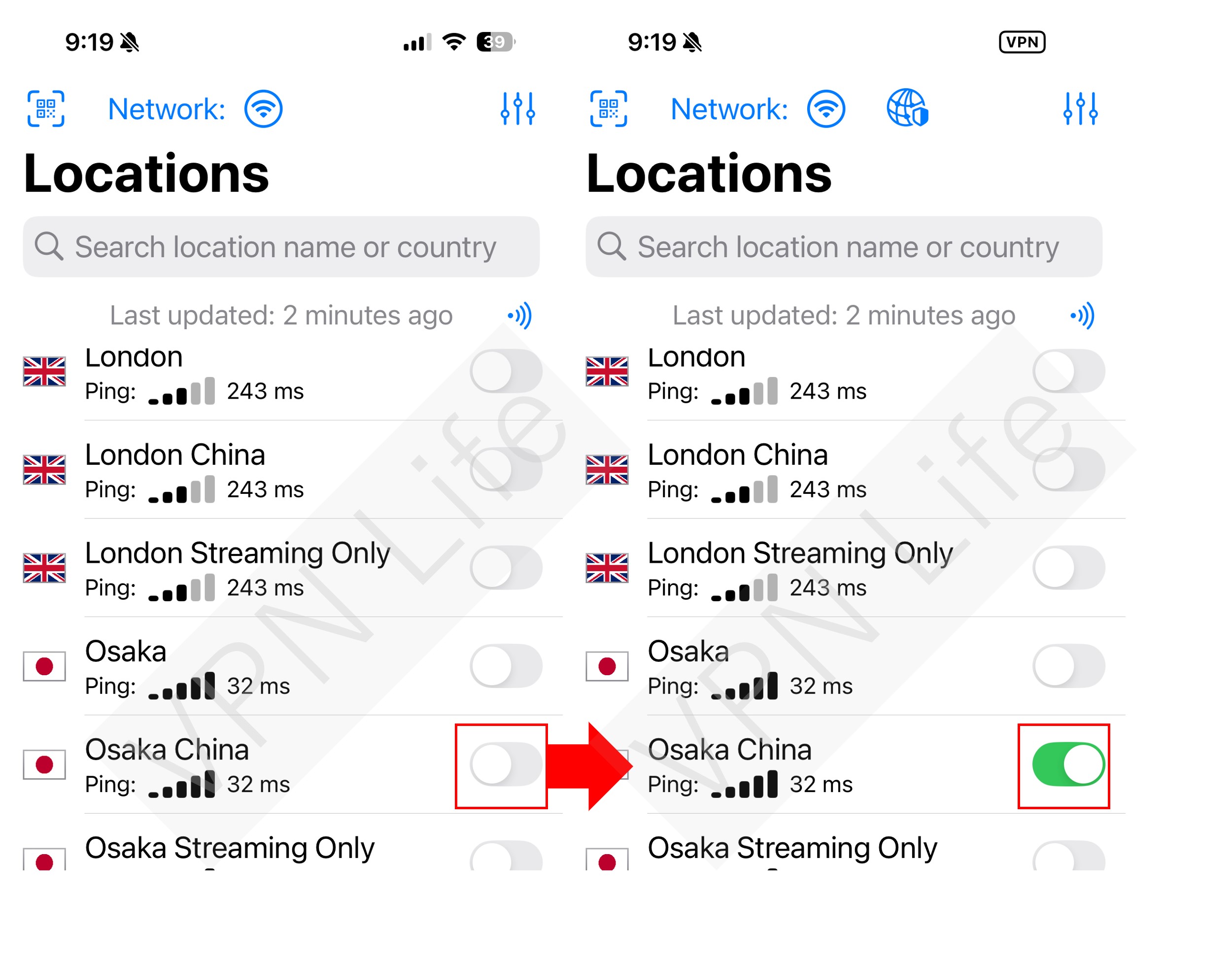 Now, you can connect to a server in Osaka, Japan.