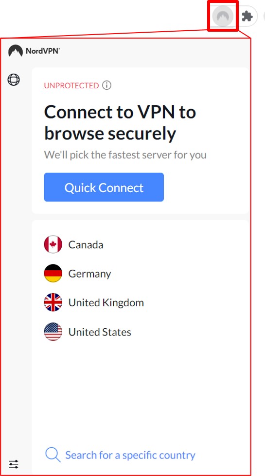 拡張機能をインストールすると、ブラウザの右上にExpressVPNアイコンを表示できます。